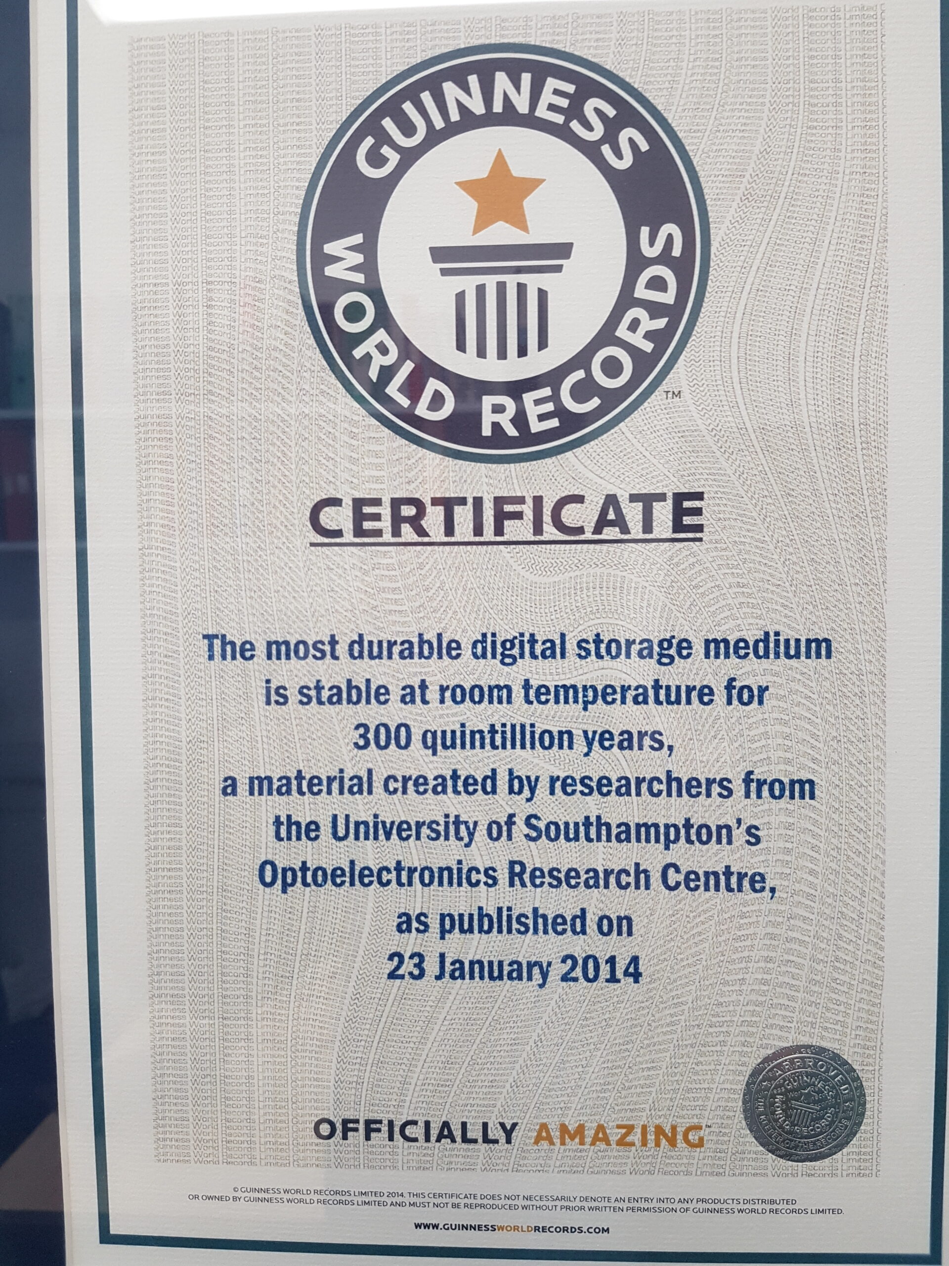 Unlike other data storage formats that degrade over time, 5D memory crystals can store up to 360 terabytes of information (in the largest size) without loss for billions of years, even at high temperatures. It holds the Guinness World Record for the most durable data storage material.